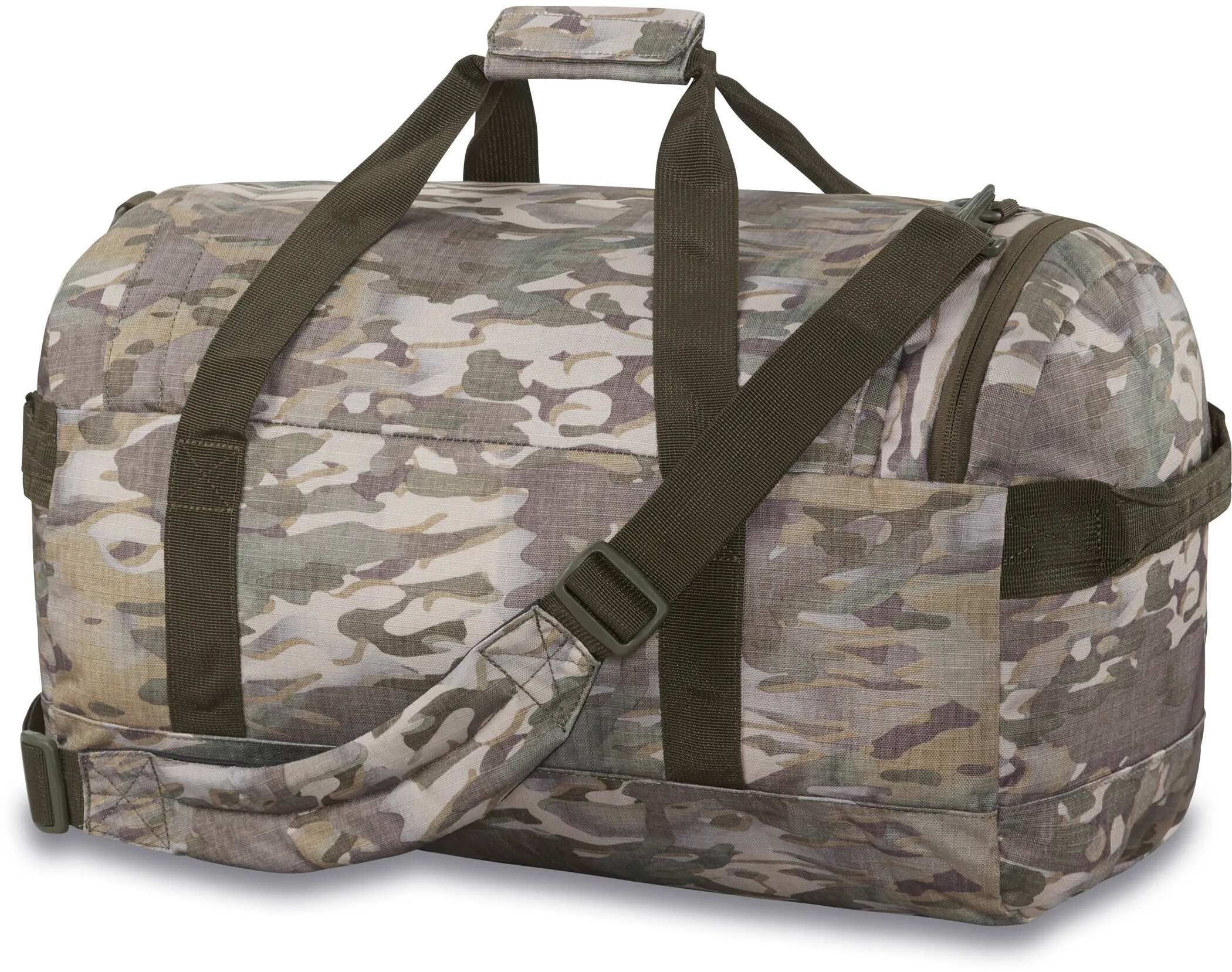 Taška Dakine EQ DUFFLE má objem 35 litrů a vstup ve tvaru U se zapínáním na oboucestný zip, který usnadňuje přístup k uloženým věcem. Z boku má taška menší zipovou kapsu na drobnosti. Do boční kapsy lze celou tašku složit pro snadné skladování. Ramenní popruh je odnímatelný, nastavitelný. Uši s polstrováním pro nošení v ruce. Materiál 600D recyklovaný polyesterový ripstop s vodoodpudivou úpravou, materiál schválený bluesign®.