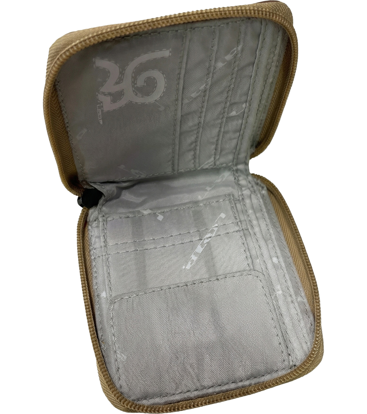 Peněženka na zip s vnitřním organizérem na bankovky a kapsou na suchý zip na mince.