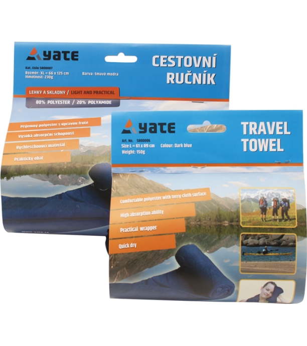 Lehký skladný cestovní ručník. Příjemný materiál - mikrovlákno s úpravou froté. Vysoká absorpční schopnost, rychleschnoucí. V praktickém obalu.