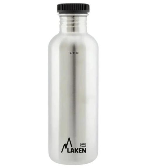 Moderní jednoplášťová láhev LAKEN z nerezové oceli 18/8, která zajišťuje naprostou bezpečnost nápoje.