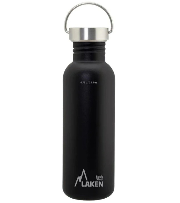 Moderní jednoplášťová láhev LAKEN z nerezové oceli 18/8, která zajišťuje naprostou bezpečnost nápoje.